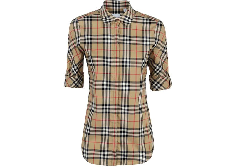 The Burberry Vintage Womens Check Stretch Cotton Twil Shirt Archive Beige is now available at Side Kicks!