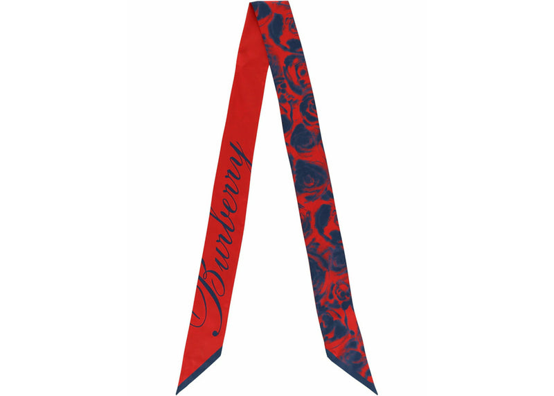 The Burberry Water Rose Silk Scarf Red/Blue is now available at Side Kicks!