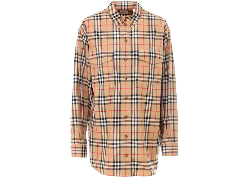 The Burberry Woman Traditional Check Shirt Beige is now available at Side Kicks!