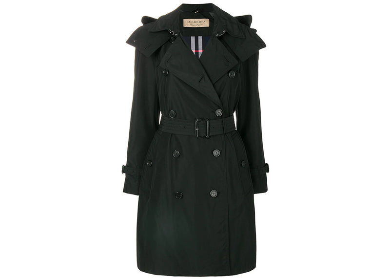 The Burberry Women's Amberford Hooded Shell Trench Coat Black is now available at Side Kicks!