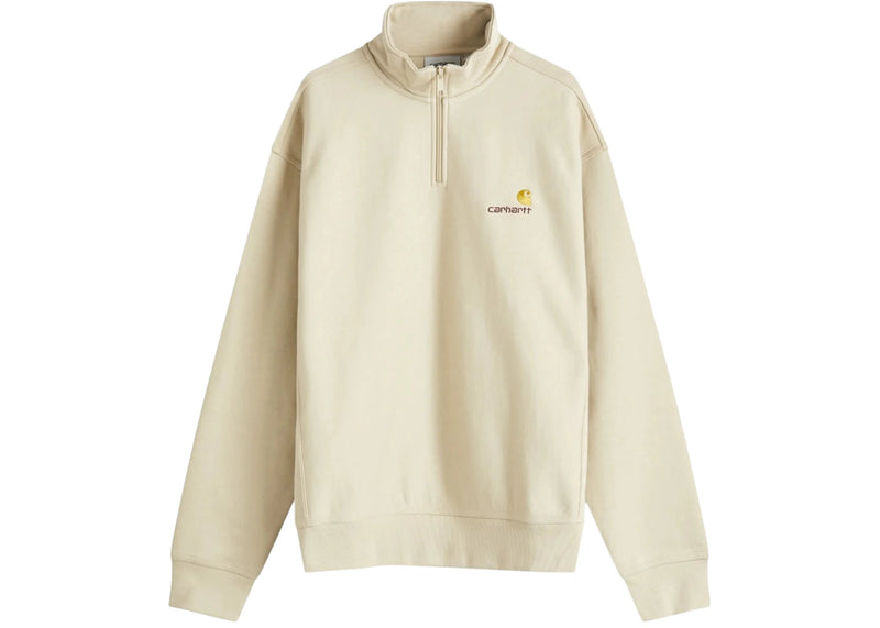 The Carhartt WIP Half Zip American Script Sweatshirt Fleur De Sel is now available at Side Kicks!