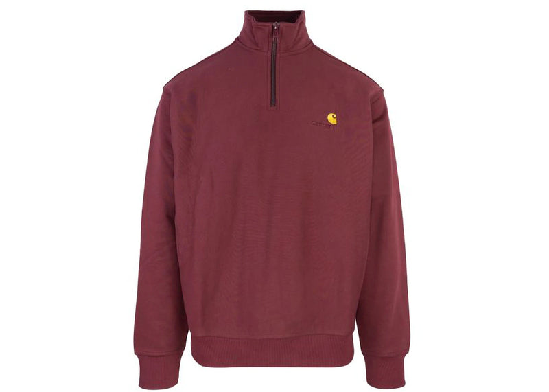 The Carhartt WIP Half Zip American Script Sweatshirt Malbec is now available at Side Kicks!