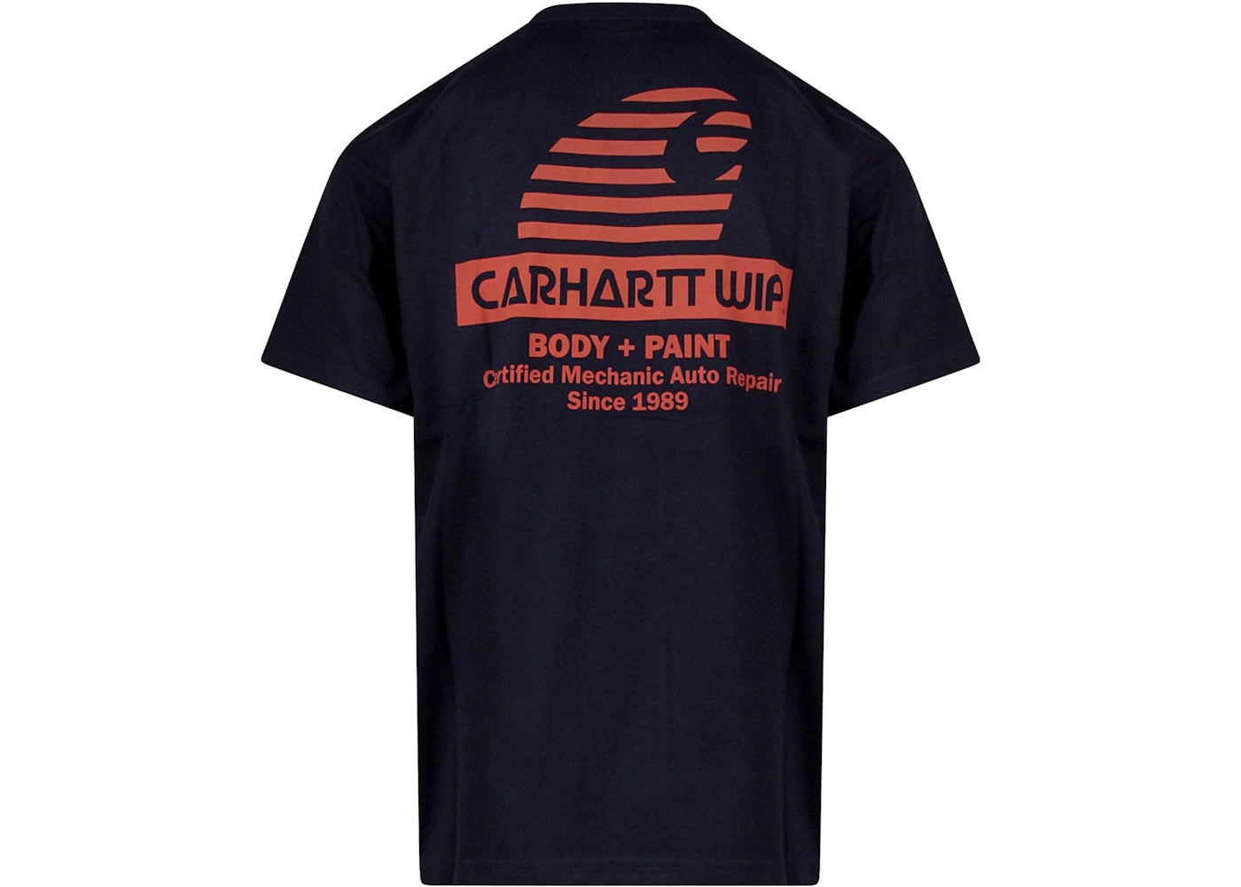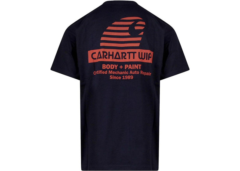 The Carhartt WIP Man Frontal Logo Organic Cotton T-Shirt Blue is now available at Side Kicks!