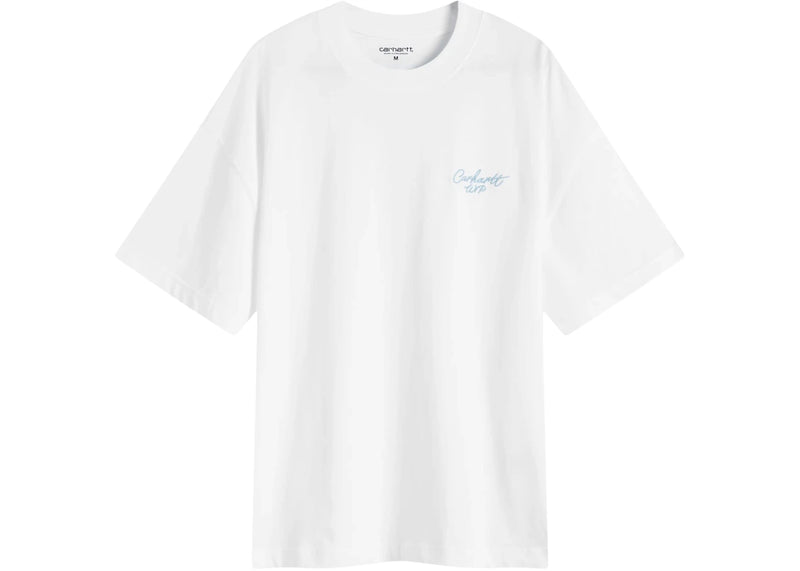 The Carhartt WIP Signature Script T-shirt White/Dusty Ice is now available at Side Kicks!