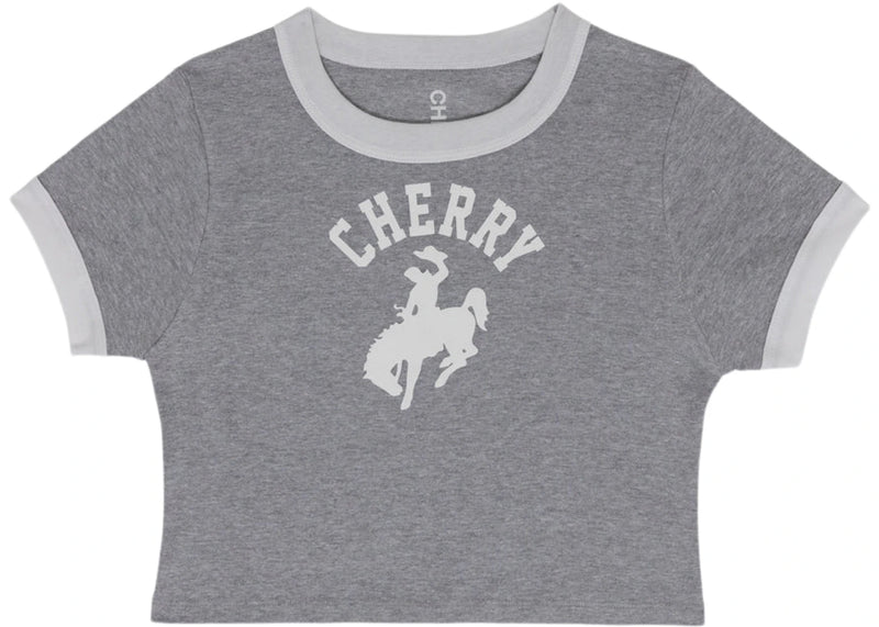 The Cherry LA Western Ringer Baby Tee Heather Grey/White is now available at Side Kicks!