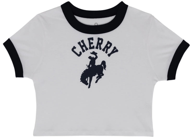The Cherry LA Western Ringer Baby Tee White/Navy is now available at Side Kicks!