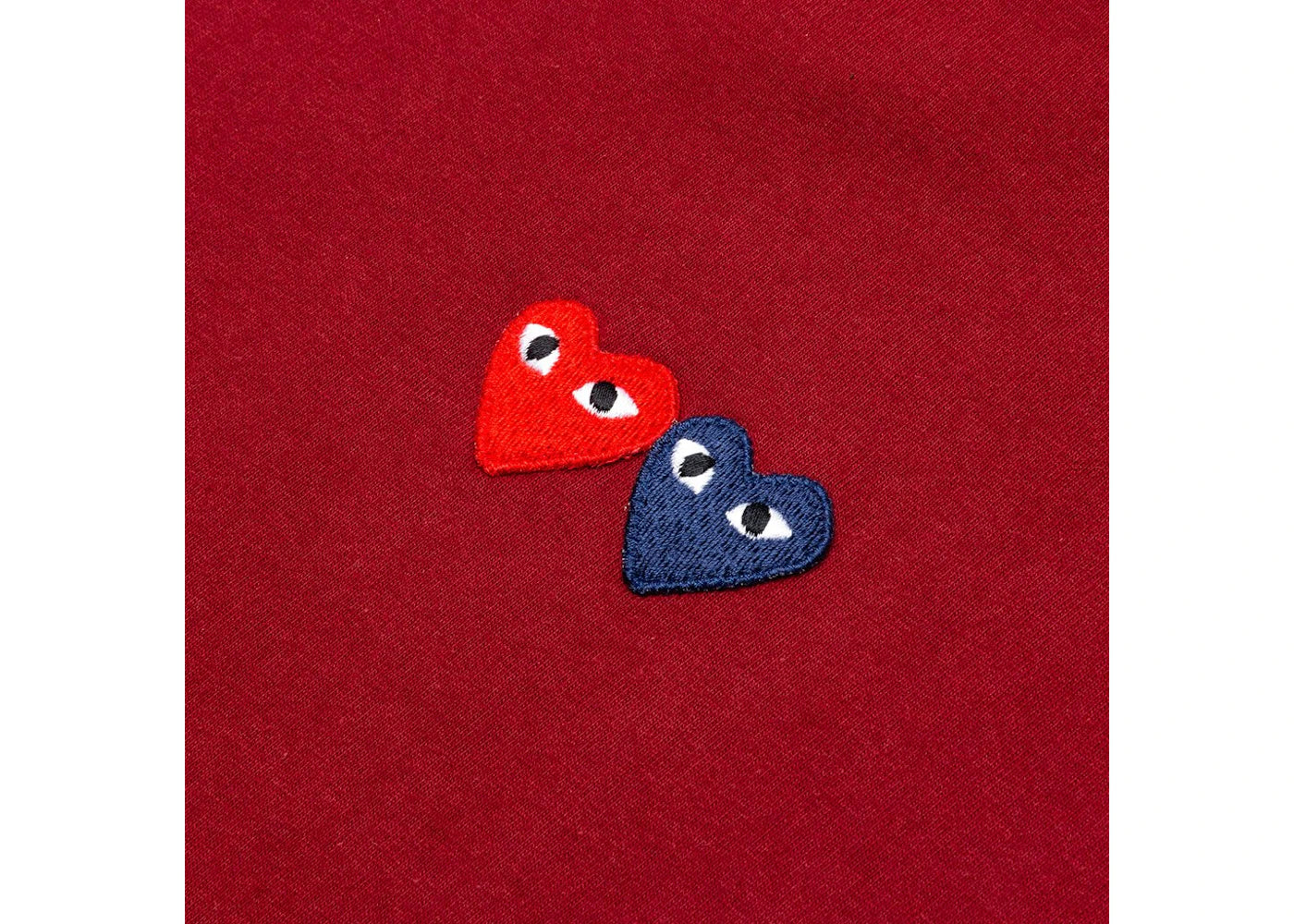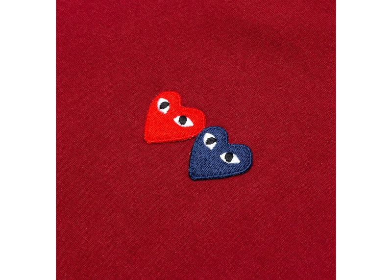 The Comme des Garcons Play Double Hearts T-shirt Maroon is now available at Side Kicks!