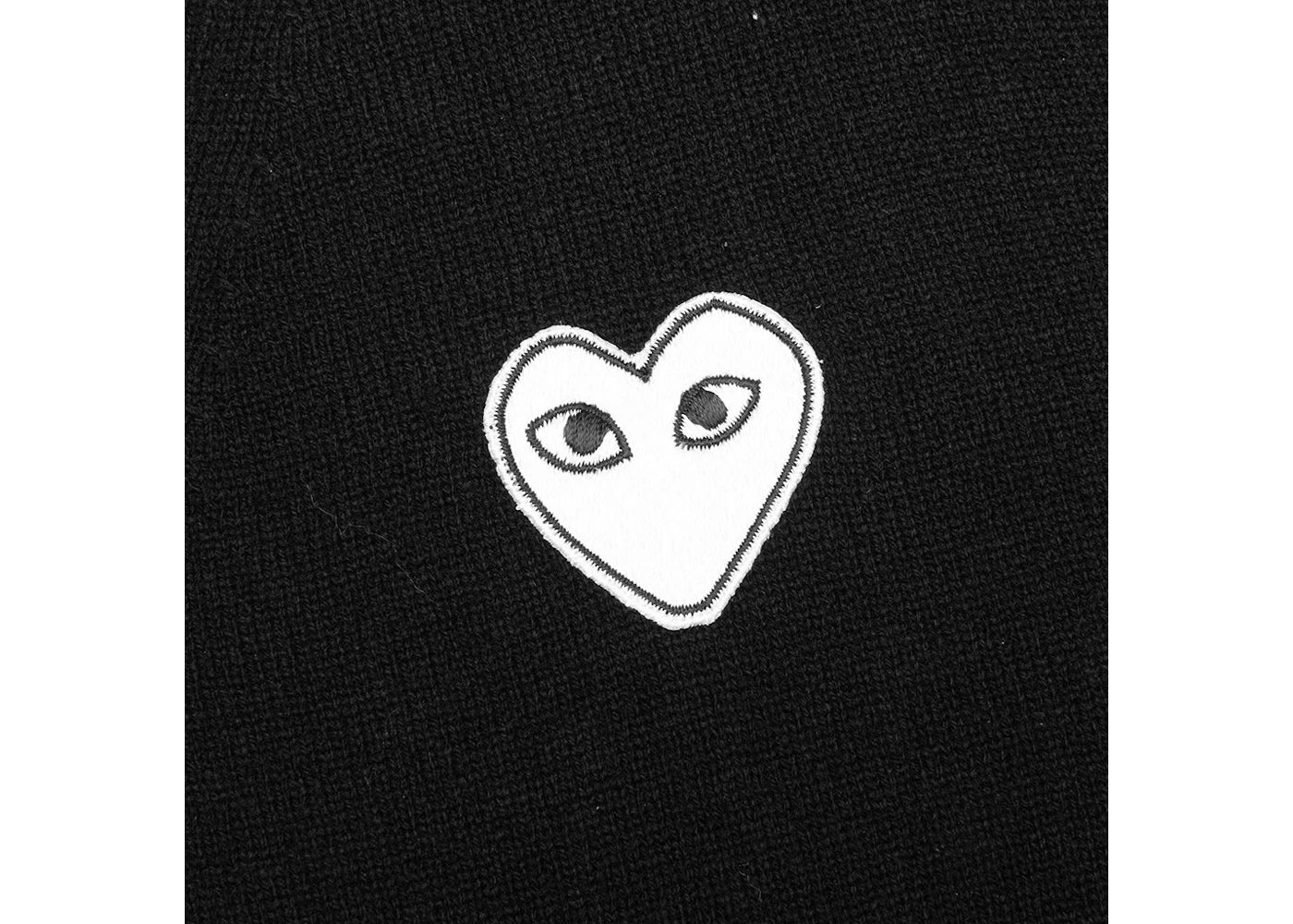 The Comme des Garcons Play White Heart Knit Cardigan Sweater Black is now available at Side Kicks!