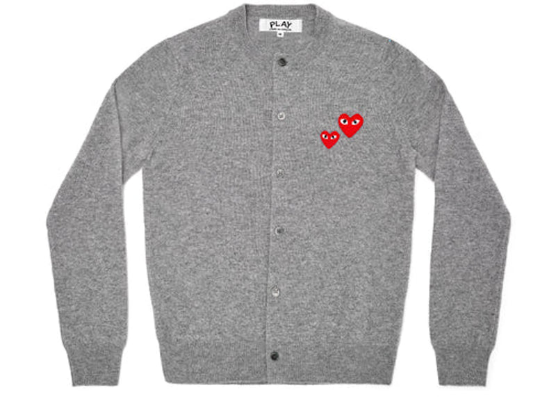 The Comme des Garcons Play Women's Double Heart Cardigan Sweater Grey is now available at Side Kicks!