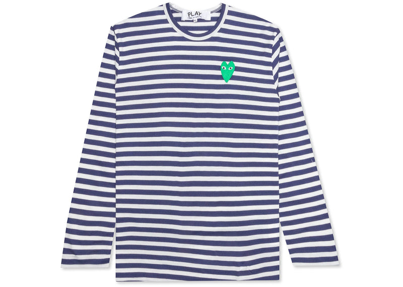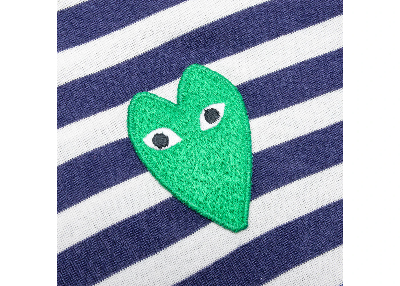 The Comme des Garcons Play Women's Green Emblem Striped L/S T-shirt Navy/White is now available at Side Kicks!