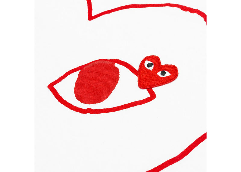 The Comme des Garcons Play Women's Red Emblem Outline T-shirt White is now available at Side Kicks!
