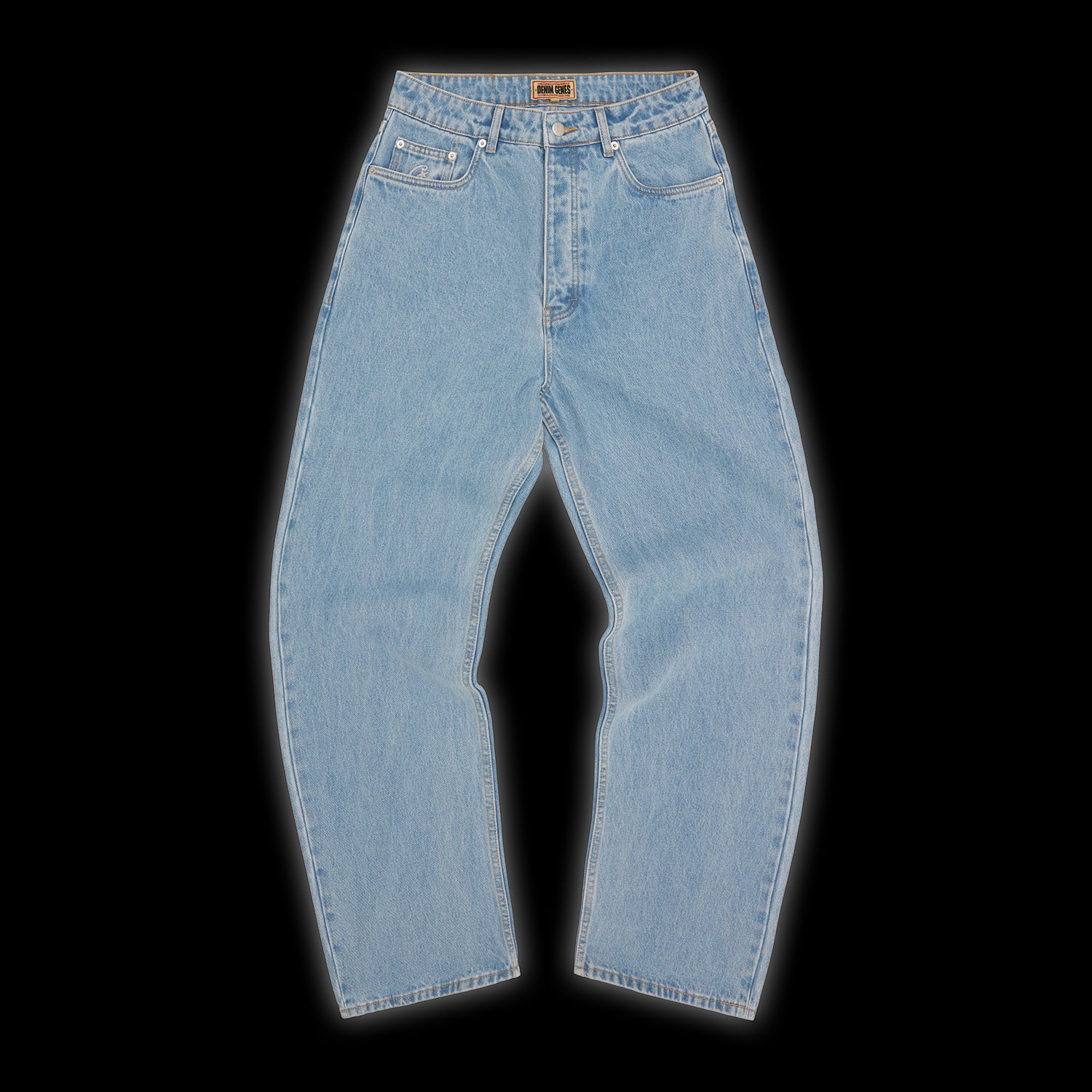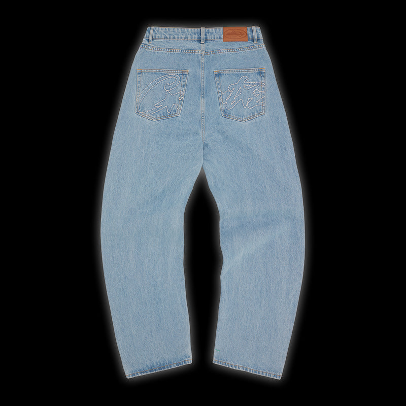 The Corteiz AlLStarz Denim Baggy Jeans washed Blue is now available at Side Kicks!