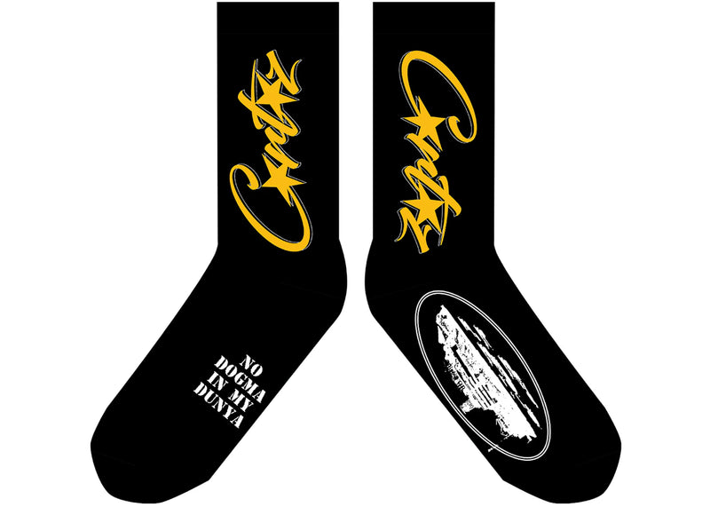 The Corteiz Black N Yellow Allstarz Socks Black is now available at Side Kicks!