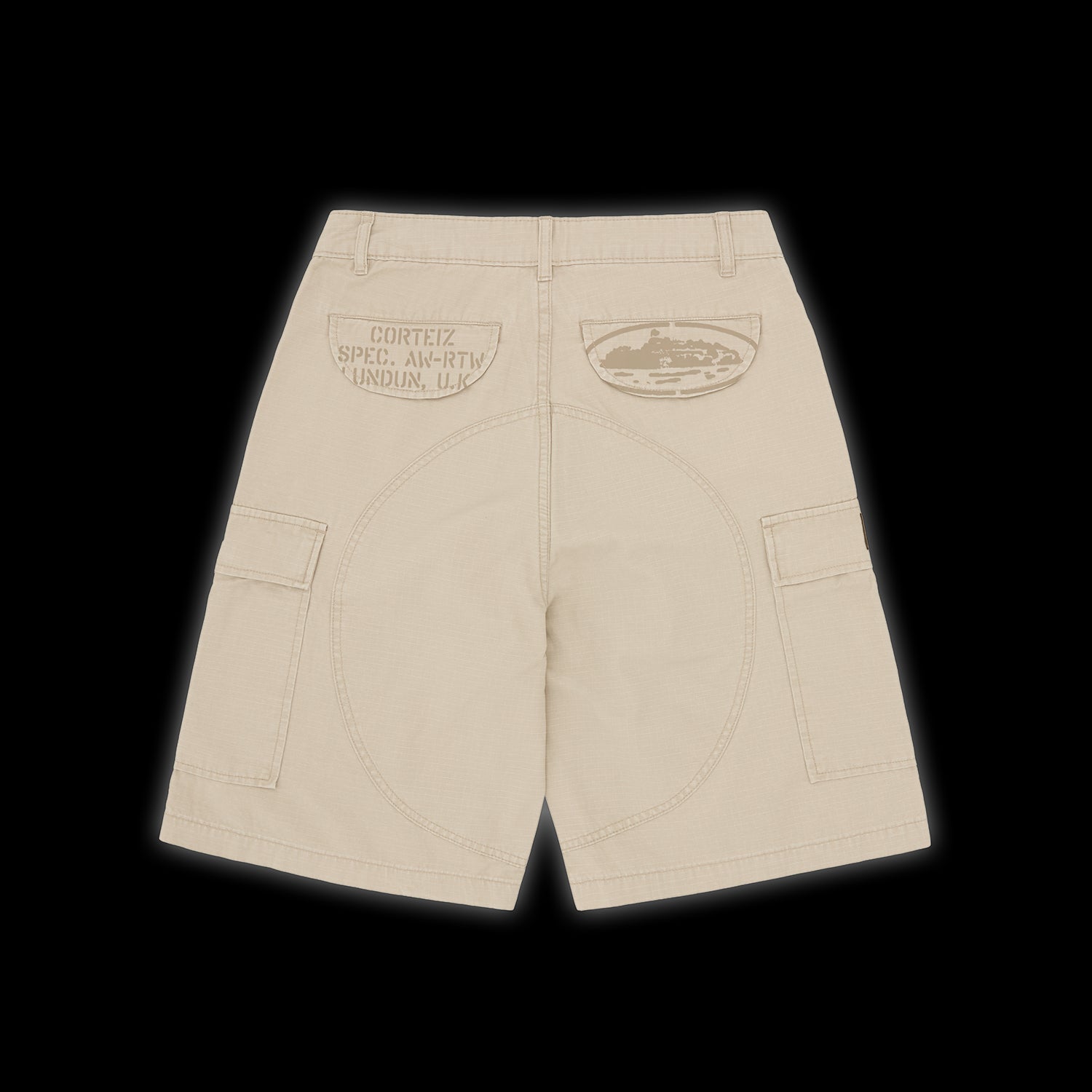 The Corteiz Guerillaz Cargo Short Tan is now available at Side Kicks!