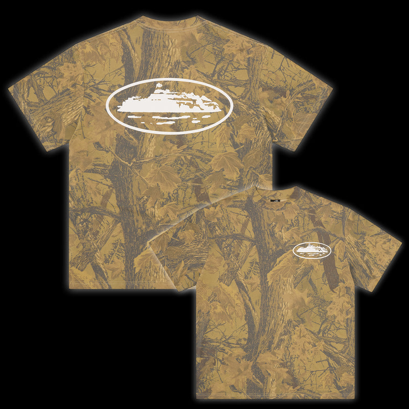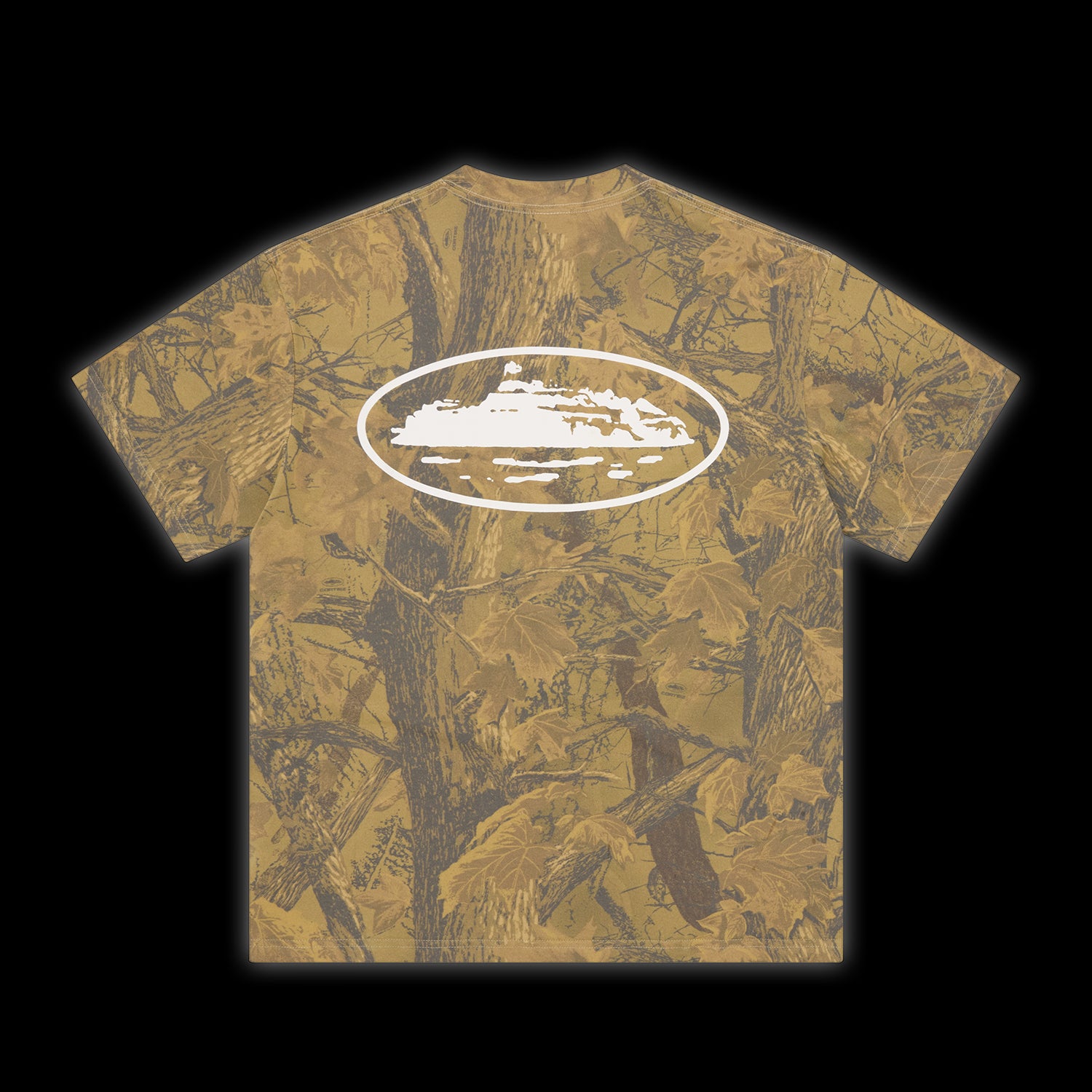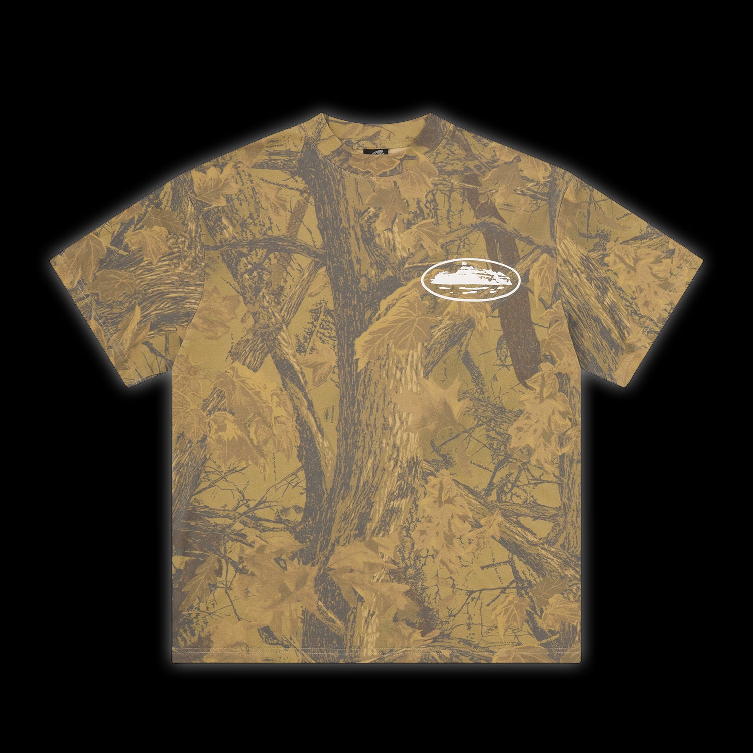 The Corteiz Island Puff Print Tee forest Camo is now available at Side Kicks!