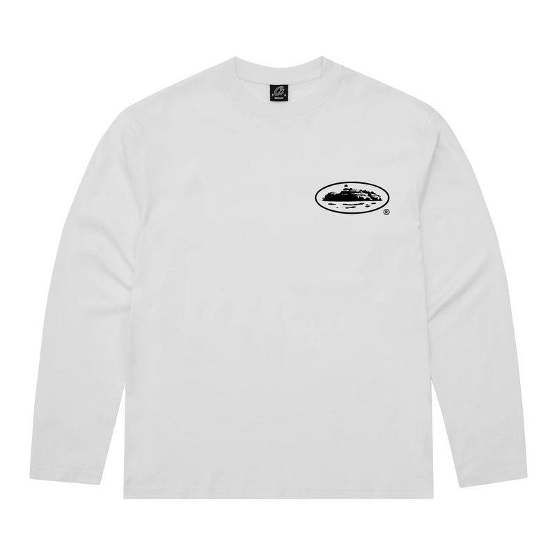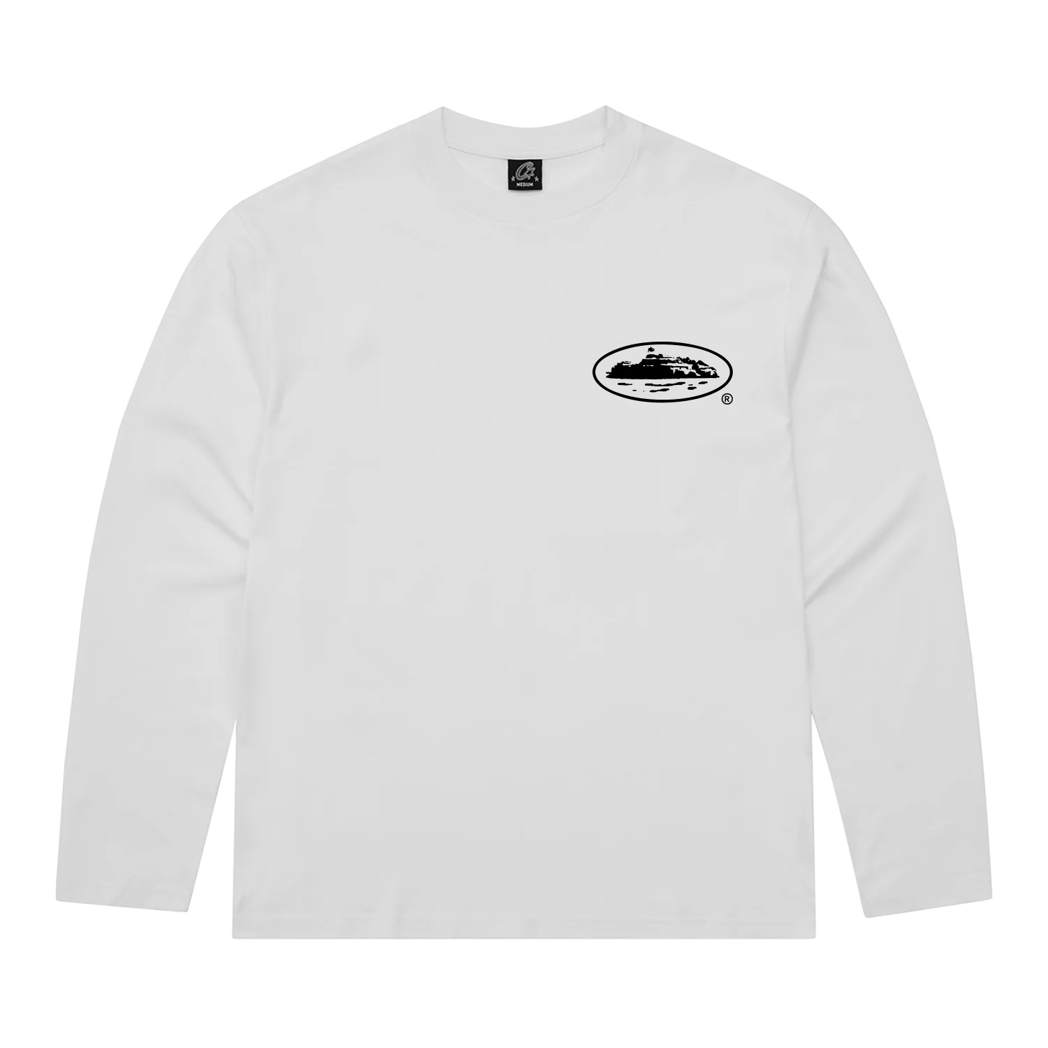 The Corteiz OG Island Longsleeve Tee White is now available at Side Kicks!