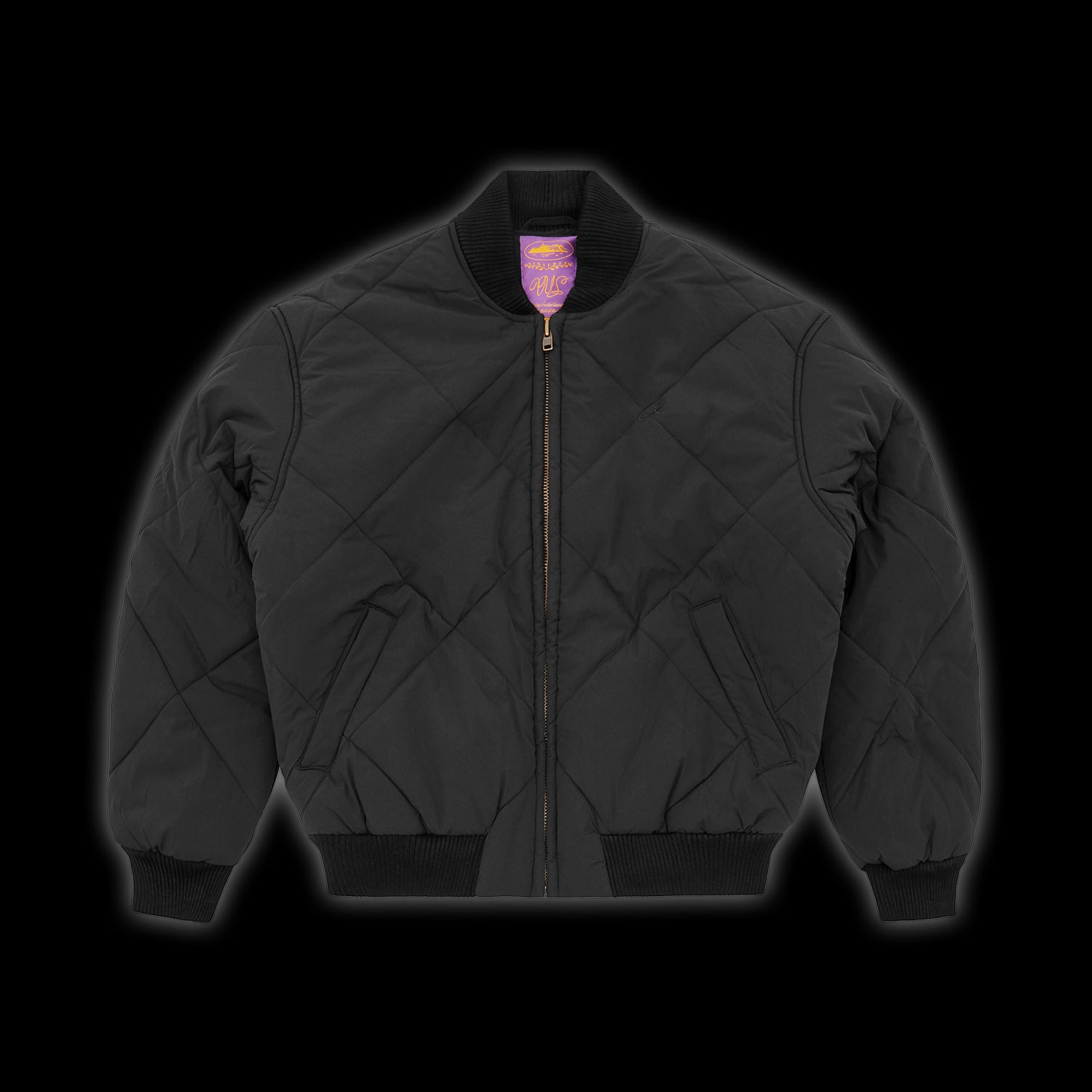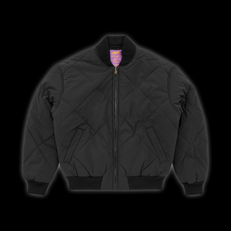 The Corteiz Olde English Quilted Bomber Jacket - black is now available at Side Kicks!