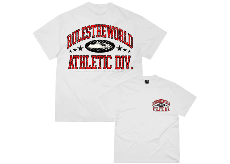 The Corteiz RTW Athletic Division Tee White/Red is now available at Side Kicks!