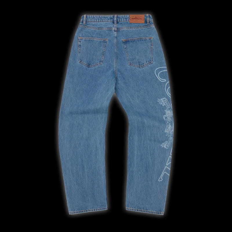 The Corteiz Superior Royale Denim Jeans Washed Blue is now available at Side Kicks!