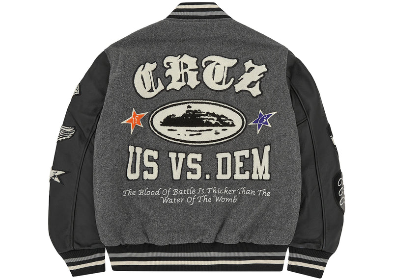 Corteiz Us Vs Dem Varsity Jacket Grey