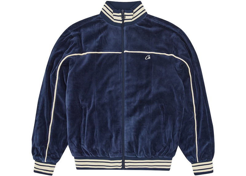 The Corteiz VVS Uptown Velour Track Jacket Navy is now available at Side Kicks!