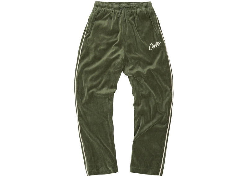 The Corteiz VVS Velour Bottoms Green is now available at Side Kicks!