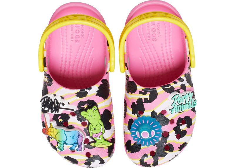The Crocs Classic Clog Ron English Party Animals Cheetah Pink (GS) is now available at Side Kicks!