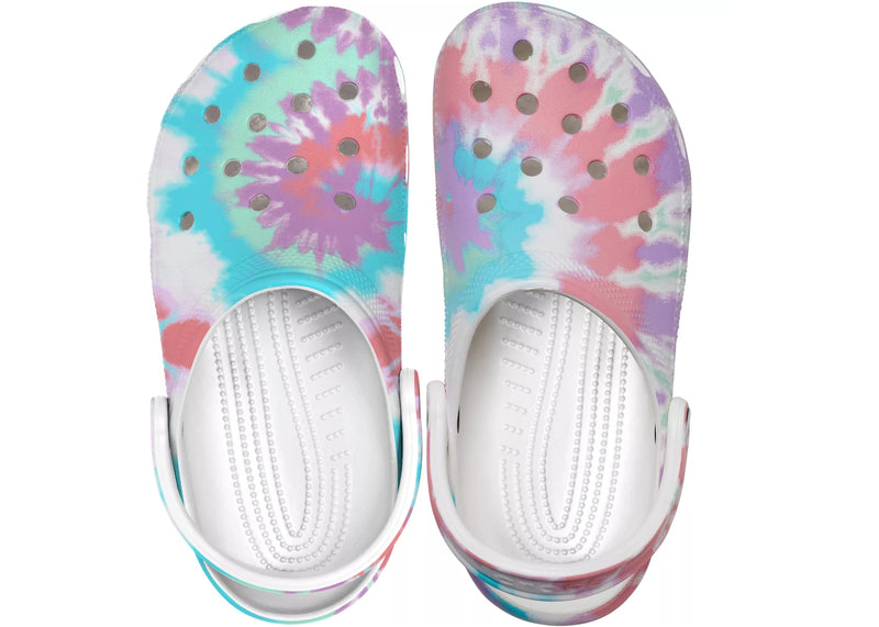 The Crocs Classic Clog Tie Dye Fresco is now available at Side Kicks!
