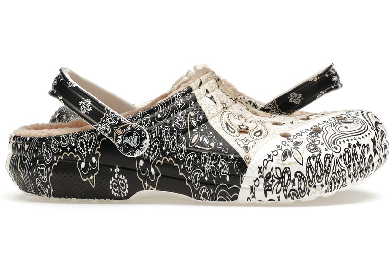 The Crocs Classic Fleece Lined Clog Bandana Black White Chai is now available at Side Kicks!