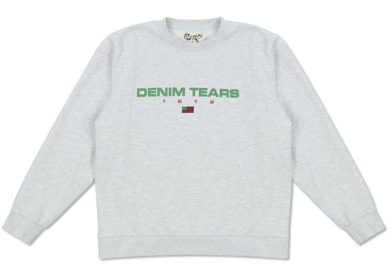 The Denim Tears 1619 Tyson Beckford Crewneck Heather Grey is now available at Side Kicks!