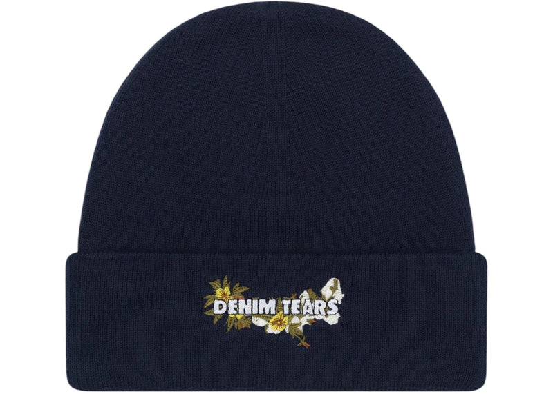 The Denim Tears Floral Beanie Navy is now available at Side Kicks!