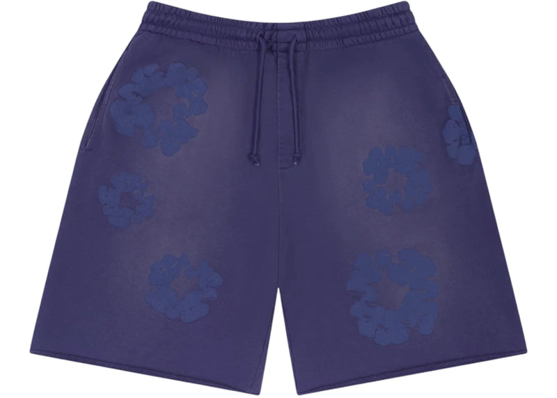 The Denim Tears Mono Cotton Wreath Sweat Shorts Washed Blue is now available at Side Kicks!