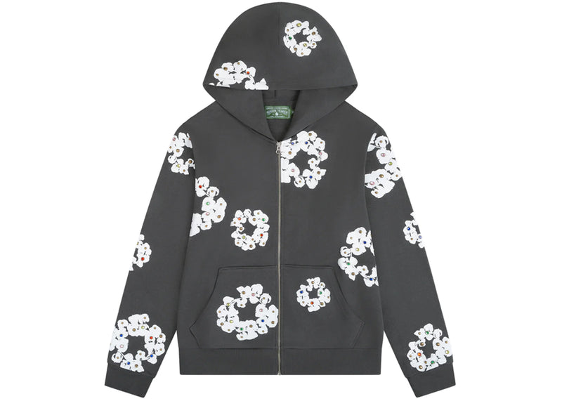 The Denim Tears Rhinestone Cotton Wreath Zip Hoodie Vintage Black is now available at Side Kicks!