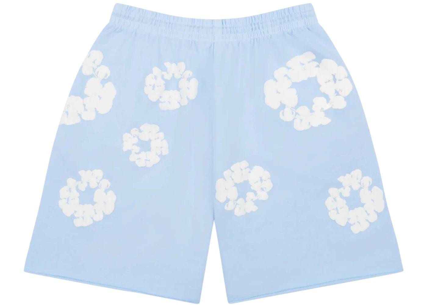 The Denim Tears The Cotton Wreath Sweatshorts Powder Blue is now available at Side Kicks!
