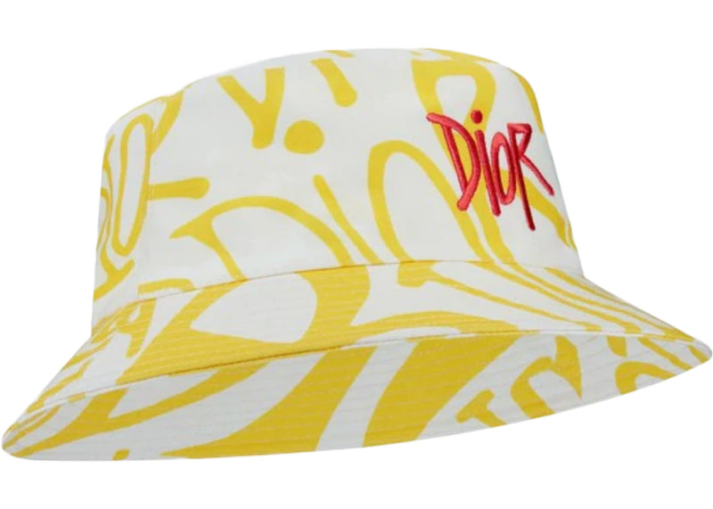 The Dior And Shawn Bucket Hat Yellow/White is now available at Side Kicks!