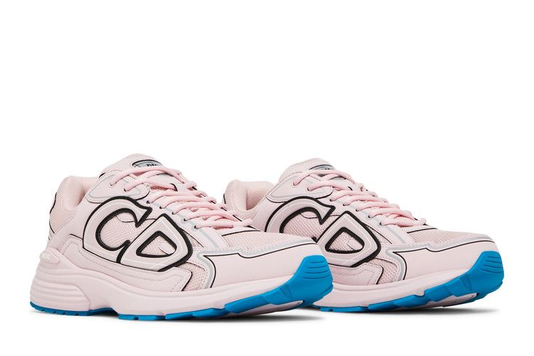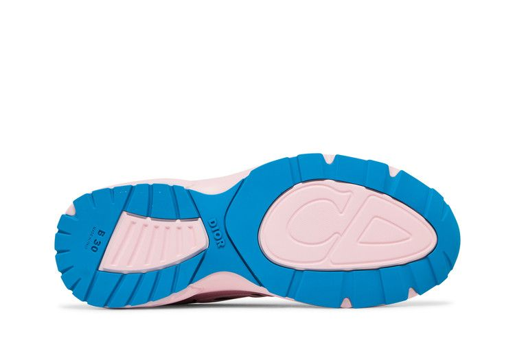The Dior B30 'Reflective CD30 - Pale Pink' sneakers offer a modern and sporty design crafted from pale pink mesh and technical fabric. Featuring a reflective tonal CD30 signature, tonal Dior B30 and CD30 signatures, and an ultra-lightweight rubber sole with fluorescent blue edging, these low-top sneakers are completed with a durable welded construction. Designed for optimal comfort, these sneakers showcase a blend of style and functionality, making them a versatile addition to any casual outfit. Proudly made in Italy, these sneakers come with a dust bag for storage.