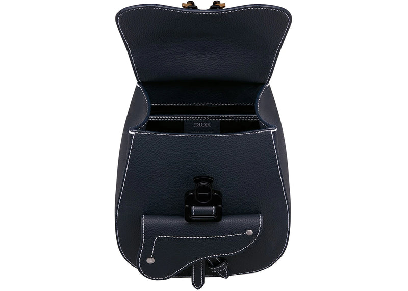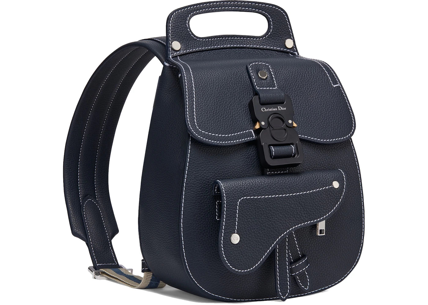 The Dior Saddle Detail Backpack Grained Calfskin Small Navy Blue is now available at Side Kicks!