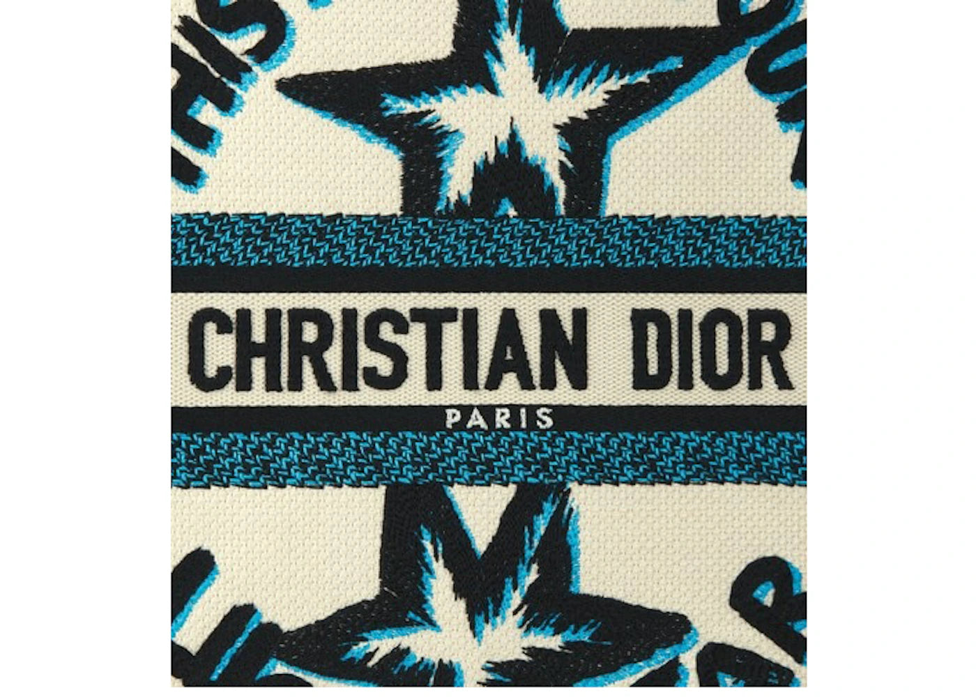 The Dior Vertical Book Tote Lucky Star Embroidery White Multicolor is now available at Side Kicks!