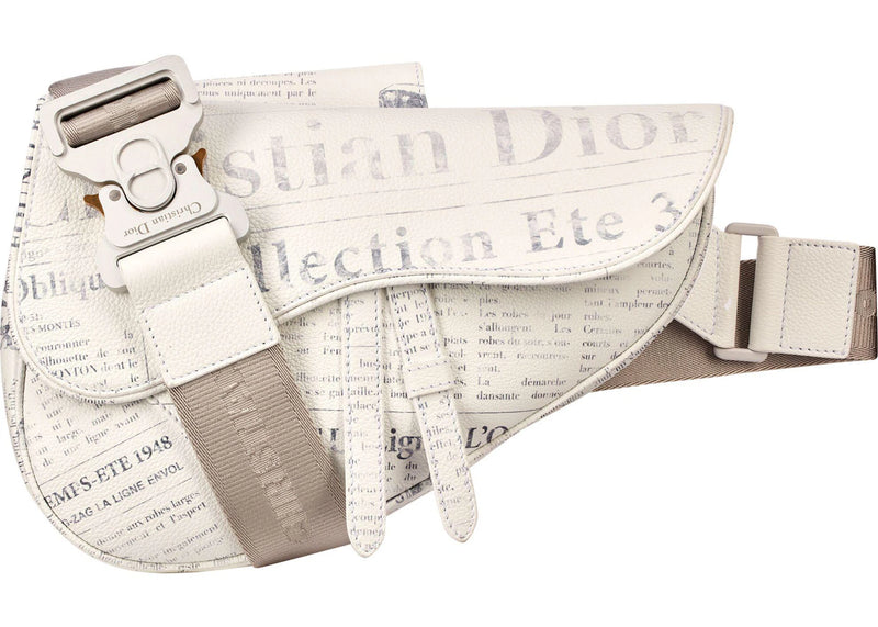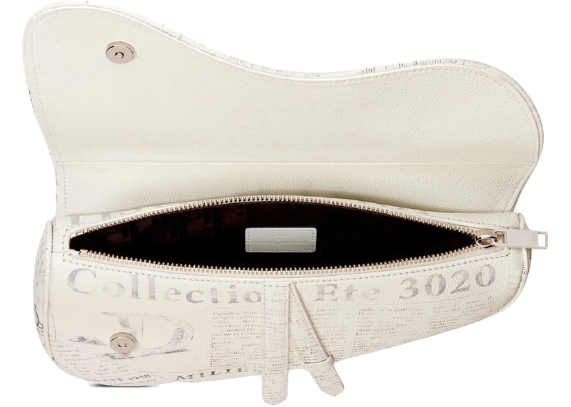 The Dior x Daniel Arsham Saddle Bag Newspaper Print Calfskin White is now available at Side Kicks!