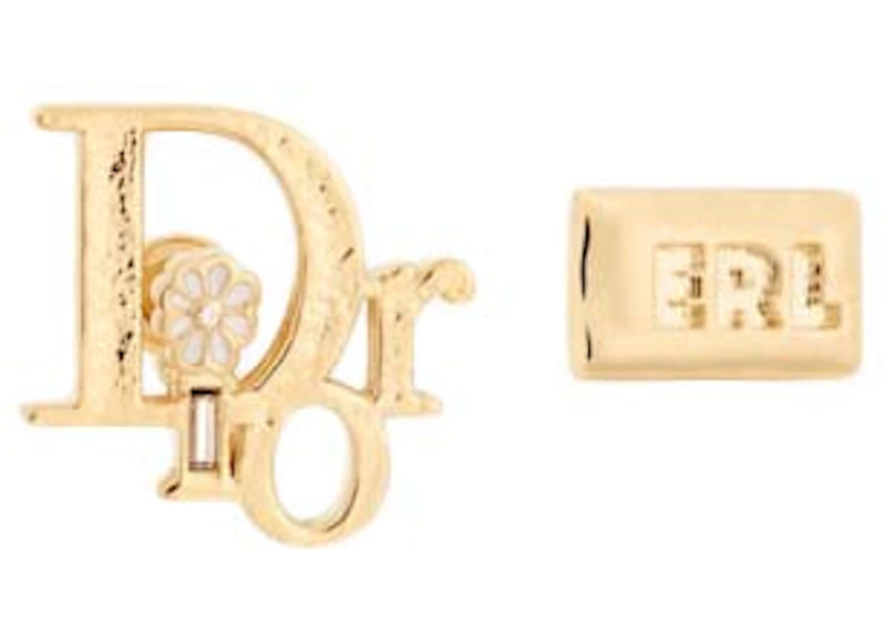 Dior x ERL Earrings Gold-Finish Brass with White Enamel and White Crystals