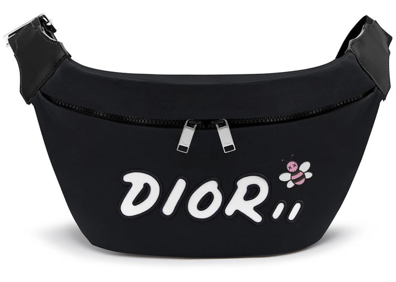 The Dior x Kaws Belt Bag White Logo Nylon Black is now available at Side Kicks!