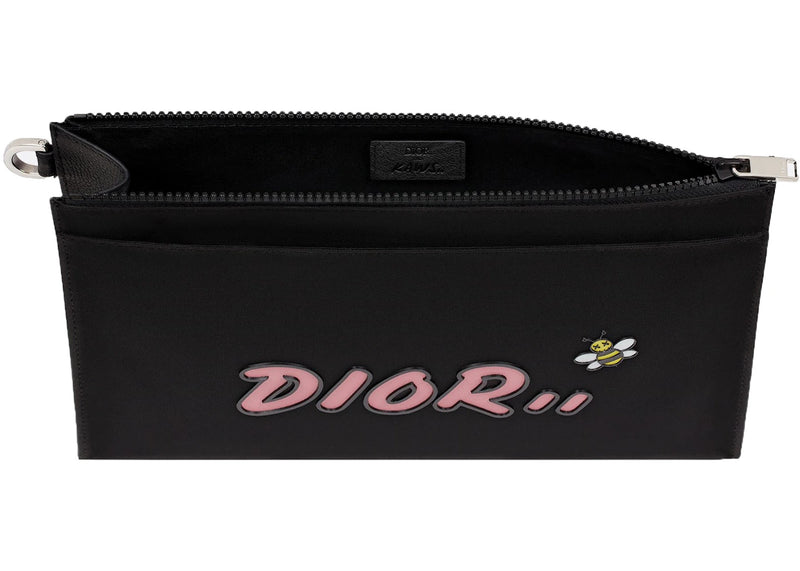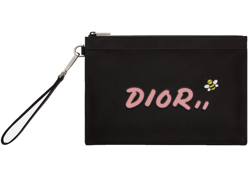 Dior x Kaws Pouch Pink Logo Nylon Black