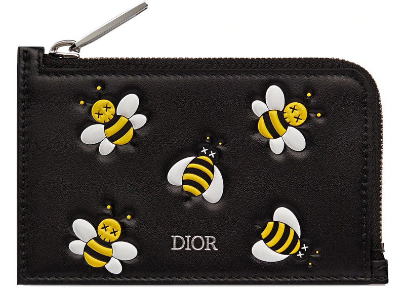 The Dior x Kaws Zipped Card and Coin Holder Yellow Bees Black is now available at Side Kicks!