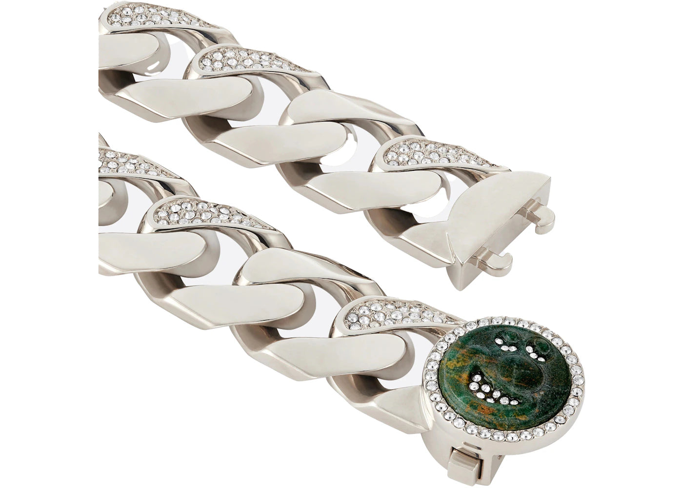 Dior x Kenny Scharf Jade Stone and White Crystal Necklace Silver