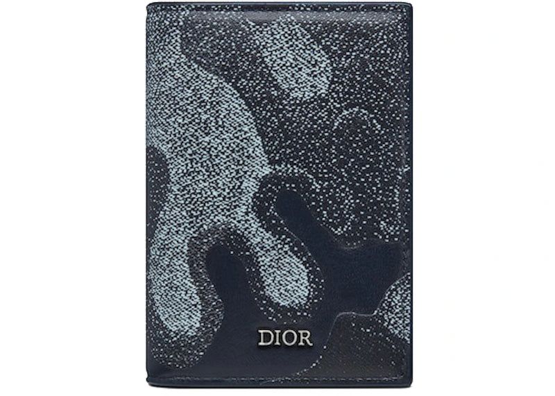 The Dior x Peter Doig Bi-fold Card Holder Blue Denim Camouflage is now available at Side Kicks!