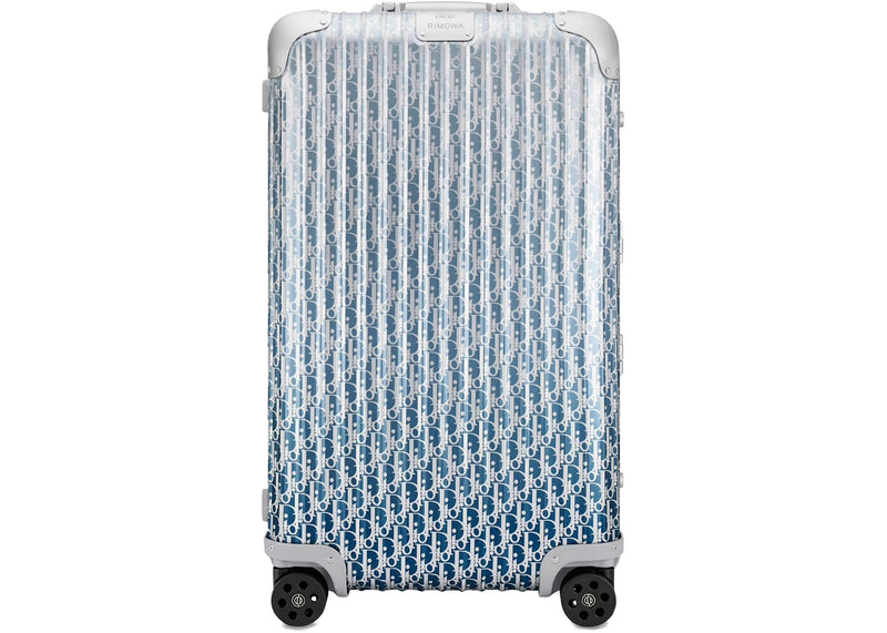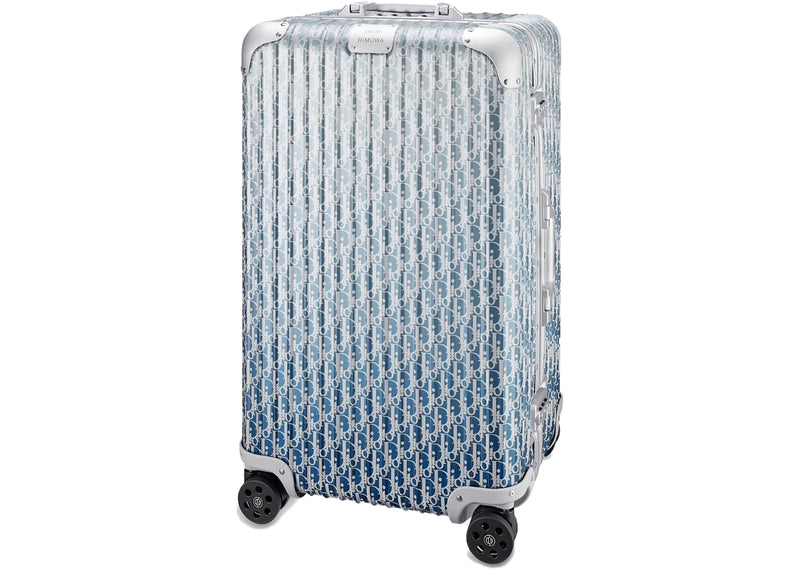 The Dior x RIMOWA 4-Wheel Large Suitcase Aluminium Dior Oblique Blue Gradient is now available at Side Kicks!