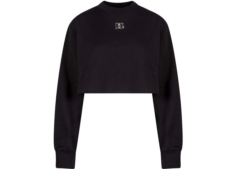 The Dolce & Gabbana Woman Crop Fit Cotton DG Patch Sweatshirt Black is now available at Side Kicks!