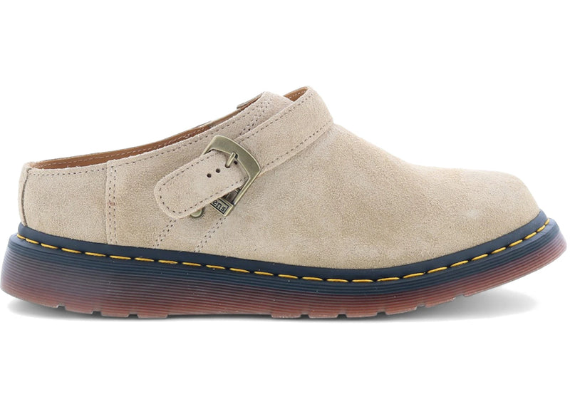 The Dr. Martens Isham Desert Oasis Suede Mules Parchment Beige is now available at Side Kicks!