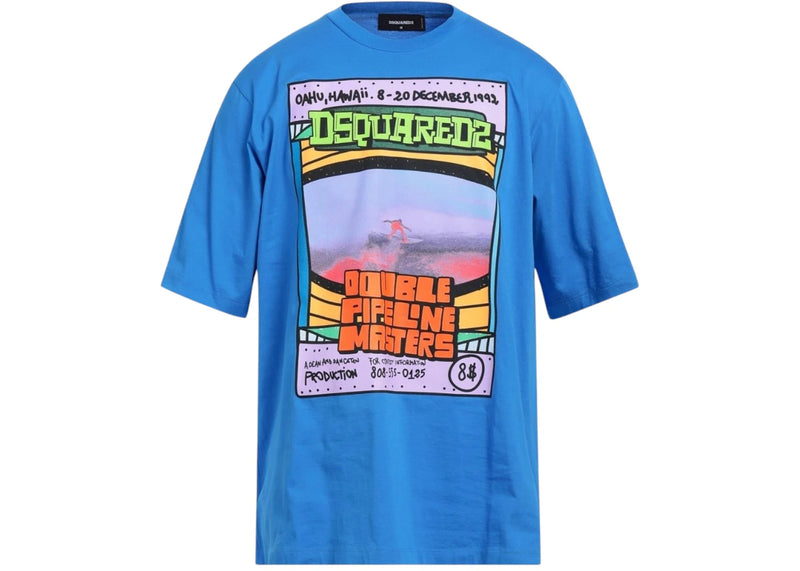 Dsquared2 Double Pipeline Masters Design Skater Fit T-Shirt Blue