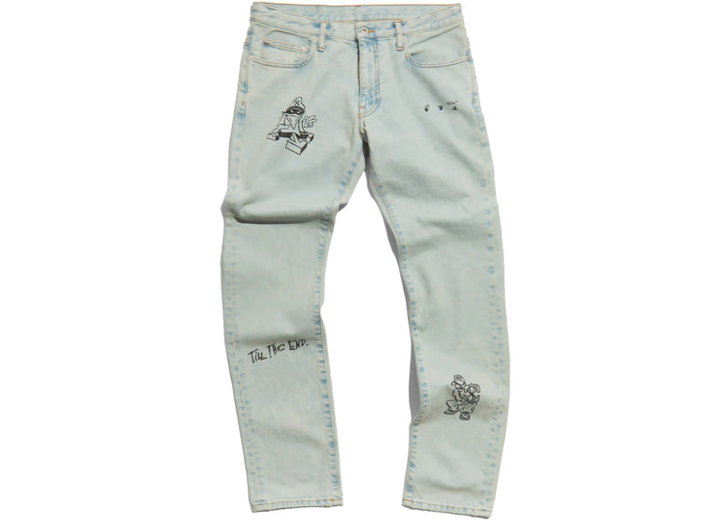 The END. x Off-White Bandit Slim Jeans Light Blue/Black is now available at Side Kicks!